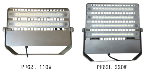 LED泛光燈PF62L產品特點: ●低調大氣的香檳色,搭配簡潔方正的外形,帶來較好的產品質感。 ●殼體的透孔散熱設計,可大幅度提升散熱效率,芯片結溫可有效降低并使得LED光效提高且不影響產品壽命。 ●搭配無玻璃設計的防積灰優化透鏡,采用國際品牌的特選進口PC塑料,可在保證透鏡不積灰的同時,提供抗黃變及UV的優異耐候性,也大幅度提升光效。 ●IP65防水防塵保護加上透鏡防積灰保護設計使得燈具可以安心無慮地應用在大部分的室外環境中。 ●燈具設計可抗14級臺風,并有基本防浪涌功能,可滿足大多的室外應用環境。 ●輕量化設計,110W的5公斤重,220W的也僅重7公斤。 LED泛光燈PF62L技術參數: LED泛光燈PF62L產品展示: