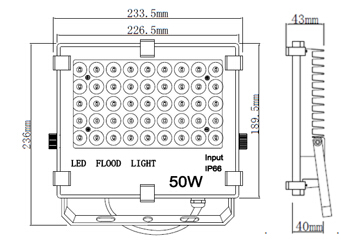 LED泛光燈產品特點: 1外殼采用高壓鑄鋁,散熱性能好 2薄燈體,體積小、重量輕,精致美觀 3燈體采用鋼化玻璃和防水硅膠密封,防護等級IP65 4光源均采用高流明LED芯片,內置恒流電源 5反光杯多種角度可選,既可用于泛光大面積照明也可用于投光遠距離照明。 適用范圍: 建筑物、體育場、廣場、碼頭、綠化照明、廣告、大廈外景、車站、鐵路、隧道、港口等戶外照明 LED泛光燈尺寸: