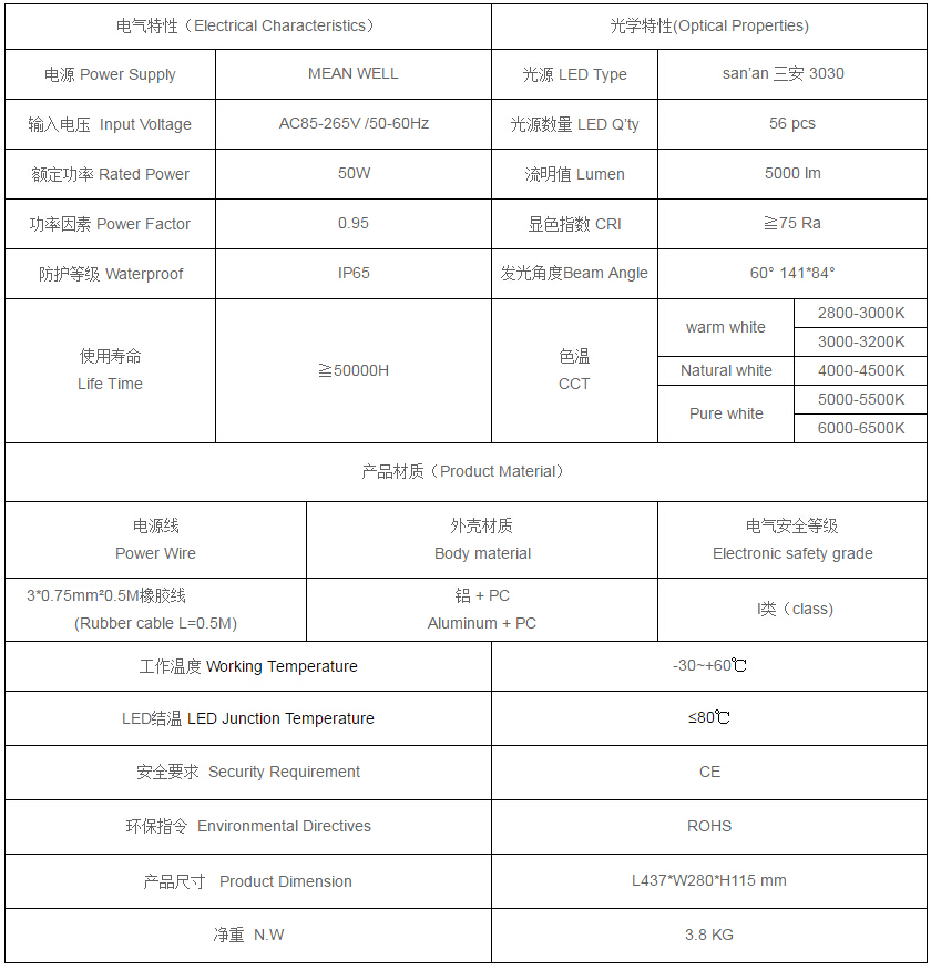 3.鋁加工而成,對流散熱設(shè)計(jì),散熱性能好,保障光源使用壽命