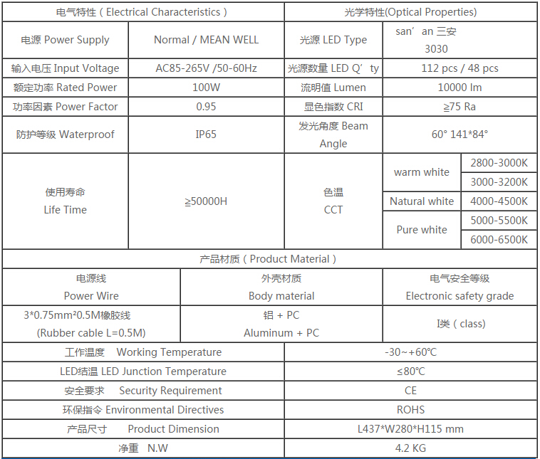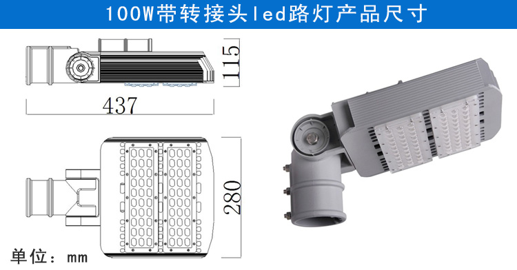 產品特點: 1.燈臂角度可180°調節,照射角度可隨意變化 2.采用高亮度LED芯片,亮度高、顯色性好 3.鋁加工而成,對流散熱設計,散熱性能好,保障光源使用壽命 4.抗17級風力,無形變、松動等現象,異常牢固 5.防護等級IP65 適用范圍: 主干道路、高速公路、高架路、市區街道、天橋、人行道等道路照明,以及廣場、學校、住宅區、工業區、公園等其他需要戶外照明的場所。 產品規格(Product Spec):PL29L-100W LED路燈
