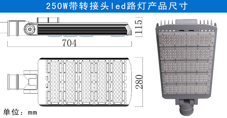 產品特點: 1.燈臂角度可180°調節,照射角度可隨意變化 2.采用高亮度LED芯片,亮度高、顯色性好 3.鋁加工而成,對流散熱設計,散熱性能好,保障光源使用壽命 4.抗17級風力,無形變、松動等現象,異常牢固 5.防護等級IP65 適用范圍: 主干道路、高速公路、高架路、市區街道、天橋、人行道等道路照明,以及廣場、學校、住宅區、工業區、公園等其他需要戶外照明的場所。 產品規格(Product Spec):PL29L-250W LED路燈