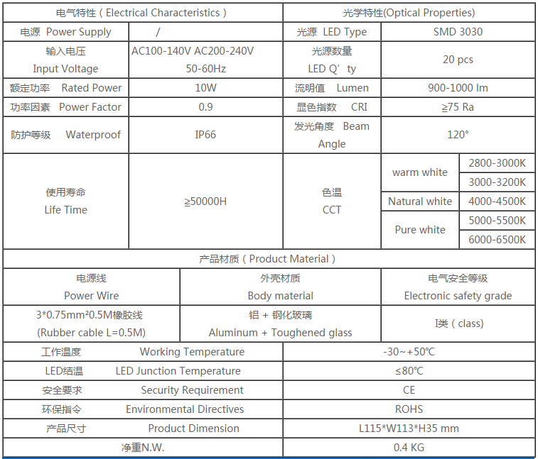 2、以LED光源,使用壽命長50000小時以上,特別適合戶外大面積無人看守照明。
